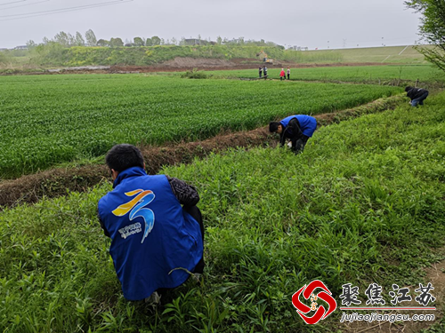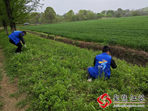 活动开始前,负责农业工作的虞鹏飞首先为社区的网格员和志愿者做进行了一个简单的培训。“这个季节的‘加拿大一枝黄花’才出苗,还没长高,和普通的草差不多大小,大家仔细看下,它的叶子大多看起来是三出脉,边缘是锯齿,茎秆一般是紫黑色……”网格员和志愿者在经过培训后,迅速投入到了“加拿大一枝黄花”拔除作业中。
