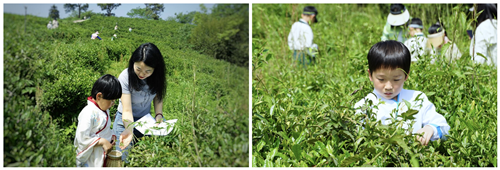随着一声清脆的哨音,采茶行动正式开始。小朋友们两两一组,穿梭在茶树间,按照刚刚学到的方法,轻轻捏住嫩绿的茶尖,小心翼翼地摘下。他们的动作虽显生疏,但那份专注与认真,仿佛在弹奏一曲春天的绿色旋律。偶尔,一阵山风吹过,茶香混杂着泥土的气息,让人心旷神怡,孩子们的欢声笑语在这片绿色的海洋中回荡,成为最美的风景。