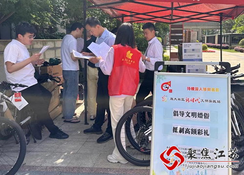 胜太社区依托新时代文明实践站,组织志愿者到家门口为居民讲解最高人民法院《关于审理涉彩礼纠纷案件适用法律若干问题的规定》相关内容、并发放《抵制高额彩礼、倡导文明婚俗》倡议书等宣传单,并讲解“坚持正确婚恋、抵制高价彩礼、主张婚事新办、反对铺张浪费、培育良好家风”的内容与意义,倡导广大群众培育正确婚恋观,摒弃婚俗陋习,从自身做起,做到婚事新办、喜事简办,让婚姻始于“爱”,让彩礼归于“礼”,争做弘扬时代新风的推动者、文明婚俗的倡导者和婚事新办的践行者。