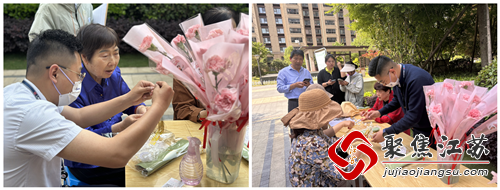活动中,志愿者带着包扎好的康乃馨,为辖区的妈妈们,送上祝福和一朵美丽的鲜花,让社会大众在浓情五月一起感恩母爱,让母亲们体会到被人记挂的温暖。