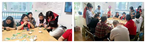 活动现场,志愿者们和残疾人、居民朋友们欢聚一堂,共同参与了香包制作活动。在志愿者的耐心指导下,大家认真学习缝制香包的每一个步骤,从裁剪布料、缝合边缘到装入艾草,大家专注而细致地完成每一个环节。每当一个香包完成时,脸上都会洋溢着满足和喜悦的笑容。志愿者们不仅手把手教授制作技巧,还不断给予鼓励和赞美,气氛格外温馨。