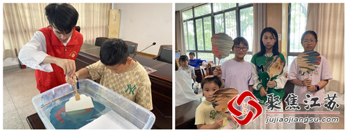 除了运动会,活动还特别安排了非遗漆扇制作体验环节。在社工的指导下,孩子们按照步骤,一桶水、一把扇、几滴大漆,通过将扇子浸入水中,让色彩随机附着于扇面,再拎出水面,制作出了一把把独一无二的漂漆扇。这一环节不仅让孩子们体验到了传统手工艺的魅力,也培养了他们的动手能力和创造力。