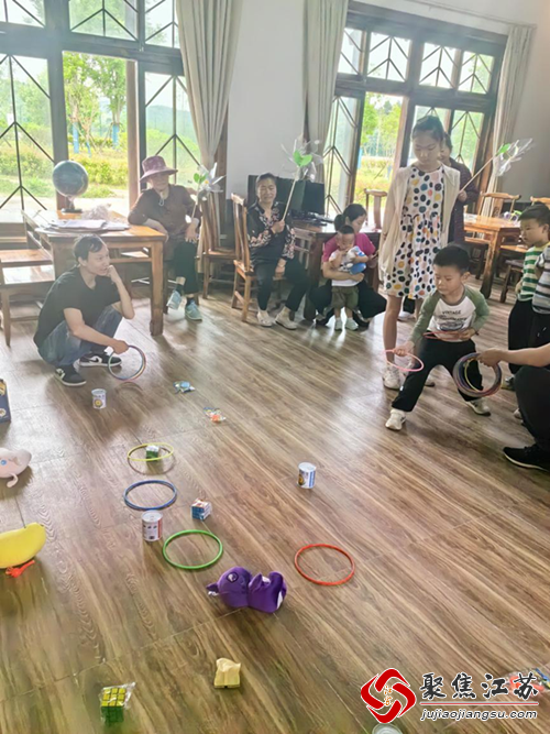 此外,现场还举办了趣味十足的套圈游戏。孩子们在父母的帮助下,努力将手中的圈套到远处的小礼品上。活动中,孩子们热情高涨,家长们也不时给予鼓励和指导,现场气氛非常热烈。通过这一游戏,孩子们不仅享受了游戏的乐趣,还锻炼了手眼协调能力,并在成功套中礼品时收获了满满的成就感。