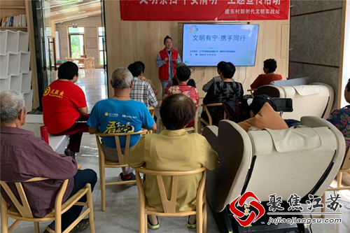 随着天气晴好,一些村民会将衣物、被单等晾晒在绿地、道边等公共区域,这样的行为不仅影响乡村环境美观、存在安全隐患,有时还会因为“抢地方”而引发邻里矛盾。2024年6月10日,为了改善这一状况,秣陵街道建东村新时代文明实践站组织开展“文明有宁·携手同行”——“晒”出文明新风尚主题宣讲活动,倡导文明晾晒,提高村民的环保意识。