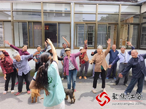 随后,大家一起进行了老人操。社工们精心设计的动作简单易学,大家积极参与,动作标准、韵律优美。在欢快的音乐声中,大家舒展着身体,增强了体质,也增进了相互之间的感情。