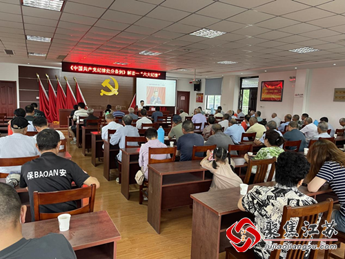 为了让党员们更加深入理解《中国共产党纪律处分条例》,特邀湖熟街道百姓名嘴、周岗老年大学校长王荣生老师进行了详细的解读。王老师围绕“六大纪律”,即政治纪律、组织纪律、廉洁纪律、群众纪律、工作纪律和生活纪律,进行了生动而具体的讲解。他通过丰富的案例和详实的内容,帮助党员们更好地理解和掌握这些纪律要求,进一步增强了大家的纪律意识和规矩意识。