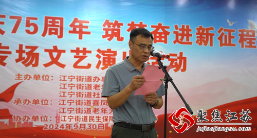 为深入学习宣传贯彻习近平新时代中国特色社会主义思想,弘扬爱国主义精神,激发老年教育工作者和学员的爱国情怀,2024年9月30日下午,江宁街道老年委联合老年大学、社会教育中心举办“庆祝新中国成立75周年 筑梦奋进新征程”专场文艺演出活动。
