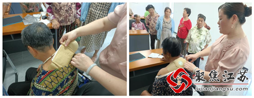本次讲座由专业健康讲师主讲,围绕三伏天的特点、对人体的影响及相应的养生方法进行了深入浅出的讲解。讲师特别强调,三伏天是养生的关键时段,饮食调理尤为重要。她建议居民多食用清热解暑的蔬菜水果,如苦瓜、冬瓜等,并强调适当补充水分,以防脱水。在起居方面,讲师提醒大家保持充足的睡眠,合理安排午休,避免长时间暴露在高温环境中。此外,讲师还介绍了一些简单易行的养生方法,包括穴位按摩、艾灸等,并在现场为居民贴三伏贴,许多居民积极跟随学习。