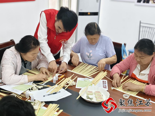 在祥和的氛围中社工简述小满节气的寓意与由来,同时引发参与成员对小满当地风俗的讨论,在此过程中,社工们也加深了对社区风土人情的了解。接着,在手工编织扇制作的环节,成员们热情参与,但是自学其中,总不得要领,在社工耐心教导和志愿者协同下,最终大家都完成了编织竹扇的制作。