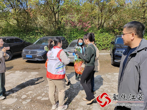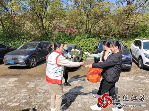 在墓园入口,社工志愿者们早早地便到达了现场。他们向村民们介绍了文明祭祀的意义,解释了移风易俗的重要性,并鼓励大家积极采用新的祭祀方式。同时,他们还向前来祭拜的村民发放了鲜花,以取代传统的纸钱,倡导绿色祭祀,传递节俭环保的理念。