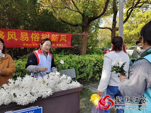 清明节临近,为营造安全、文明、和谐、有序的祭祀环境,村民们以各种方式祭奠逝者、悼念先人、寄托哀思。为推进移风易俗,4月4日,江宁街道清修村联合臻爱社工开展“文明祭祀新风尚 移风易俗树新风”主题活动。