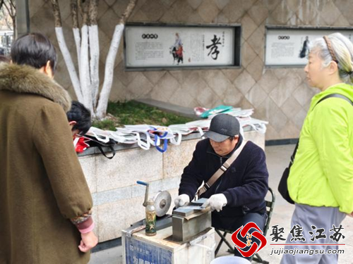 除了义诊,便民服务区域同样热闹非凡。磨刀师傅熟练地操作着工具,不一会儿,原本钝了的刀就变得锋利无比。居民们纷纷将家中闲置的刀拿来打磨,既节省了购买新刀具的费用,又让旧物焕发了 “新生”,切实感受到了活动带来的生活便利。此外,手部护理区域也备受欢迎,志愿者们温柔地为居民去角质、涂护手霜、手部按摩,并传授日常手部保养技巧。“没想到在家门口还能享受这么细致的服务,手暖和了,心更暖!”刚体验完手部护理的王阿姨笑容满面。