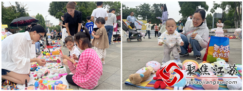 义卖环节是本次活动的一大亮点。孩子们将自己闲置的玩具与图书拿出来义卖,不仅体验了交易的乐趣,还学会了资源共享和环保的理念。许多家长也积极参与其中,和孩子们一起体验这特别的义卖活动。此外,现场还设置了众多活动体验区,备受欢迎。孩子们在非遗漆扇、涂扇、涂色娃娃、套圈、投壶等多个项目中自由选择和体验,不仅增加了他们对传统文化的了解,还通过亲身实践,培养了他们的动手能力和创造力。