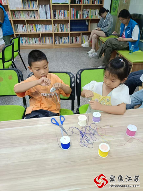 知识宣讲后,活动迎来趣味实践高潮——传统“八股绳”手工制作。在志愿者手把手指导下,孩子们挑选彩色丝线,聚精会神地编织缠绕。一根根质朴的八股绳,不仅锻炼了动手能力,更成为“团结协作、坚韧不拔”精神的具象载体。看着自己亲手完成的五彩绳结,小朋友乐乐兴奋地展示:“老师说这绳子就像科学家们拧成一股劲儿!我要把它挂起来,天天看!”