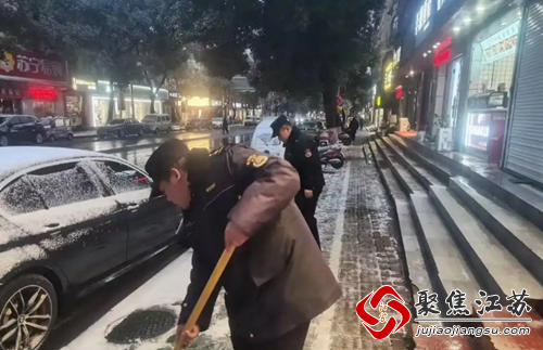 一线冲锋:包干分片,党员干部带头冲锋陷阵。根据应急预案分工,禄口城管办各级领导、党员干部纷纷扛起锹、拿起扫把,带领所属队员火速赶往各主次干道、匝道路口、背街小巷、医院学校、农贸市场等指定“战位”展开扫雪铲雪、抛盐撒剂消雪除冰行动。全体队员坚持发扬英勇顽强、不怕牺牲的城管铁军精神,轻伤不下火线,不分昼夜,勇将综合素质提升活动成果转化为过硬战斗力,持续展开这场以人民的名义的保卫战。