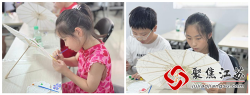 随后进入精彩的实践环节,孩子们领取到素面油纸伞、丙烯颜料、画笔和丰富的图案参考资料后,便迫不及待地开始了自己的艺术创作。他们或低头凝思,构思独一无二的图案,或相互小声讨论,交流配色心得,将天马行空的想象付诸笔端。一时间,活动室内只剩下画笔与伞面摩擦的细微声响,浓厚的创作氛围悄然弥漫。每一把伞面都逐渐被赋予独特的生命,有的绘就了江南水乡的烟雨朦胧,有的绽放了绚烂的夏日繁花,有的则勾勒出可爱的卡通形象,传统与现代在此刻碰撞出创新的火花。