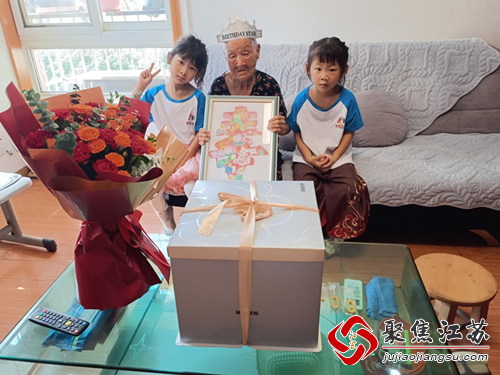 在家人陪伴下,老人端坐厅堂接受来自社区的敬意,社区工作人员亲手送上嵌有“期颐安康”的慰问红包;辖区青少年献上共同绘制的七彩立体寿桃贺卡,稚嫩祝福声中传递着文明的接力;志愿者点燃生日蜡烛,在《生日快乐》的童声合唱声中,象征“温暖祝福”的奶油芬芳弥漫整个厅堂。米、油、有机杂粮等实用礼品更彰显对长者日常需求的精准关怀。