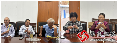 知识学习之后,活动进入了轻松愉快的手工环节——制作非遗艾草养生锤。在志愿者的耐心指导下,老人们将艾草填入布包,亲手缠绕制作成锤。大家互相交流制作心得,现场艾草清香弥漫。一位阿姨高兴地说:“这个锤子敲敲肩膀特别舒服,还能驱寒,真是又实用又好玩!”