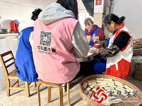 活动现场热闹非凡,工作人员与志愿者早早地忙碌起来,大家齐聚一堂,桌子上摆满了新鲜的食材。大家热情满满,有的细心地切着蔬菜,准备馅料;有的手法娴熟地包制,将温暖与关怀都包进了小小的春卷和萝卜圆子中。现场气氛温馨和谐,大家边包边聊,欢声笑语,每一个春卷、每一个圆子都被赋予了爱的温度。