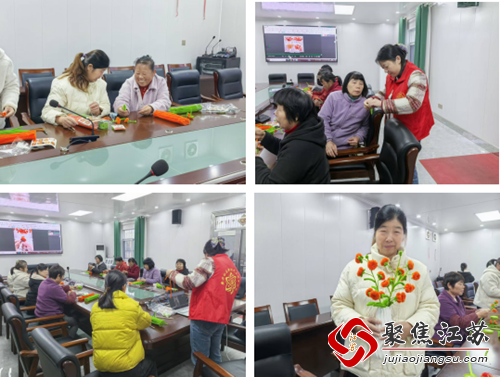 活动当天,志愿者率先开讲“节气小课堂”,结合“冬日围炉温酒”“阳台晾晒冬菜”等生活场景,把小雪节气“温酒御寒、迎冬储物”的老习俗讲得鲜活易懂;更特意点出柿子“柿”谐音“事”的巧思,笑着说:“咱们今天做的柿子花,就是要把‘事事如意’的好彩头,一个个送到大家手里!”这番接地气的讲解,不仅让在场妇女摸清了节气背后的文化门道,更让“事事如意”的吉祥意头提前暖了人心,为后续的手工环节做足了情感铺垫。