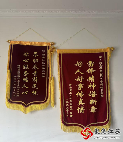 近日,江宁区湖熟街道河南社区居民张女士专程来到社区服务中心,将一面印有“贴心服务暖人心 尽责尽责解民忧”字样的送到008网格网格员陶阳手中,感谢他长期以来认真负责、贴心周到的服务。据悉,这已经是陶阳获得的第二面锦旗。