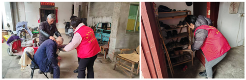 活动前期,工作人员通过前期摸排、电话问询、上门登记等方式,精准梳理出有服务需求的老人名单,提前沟通服务时间,备齐理发工具、指甲修剪套装、清洁消杀用品等物资,确保上门服务安全、有序、高效开展。活动当天,志愿者们逐一走进老人家中,开展免费理发、修剪指甲、整理内务、陪伴谈心等多项贴心服务。在理发过程中,志愿者耐心倾听老人对发型的要求,细致修剪、认真打理,用娴熟的手艺为老人剪出清爽利落的发型,让老人们以崭新面貌迎接好兆头;修剪指甲时,志愿者动作轻柔细致,做好清洁与防护,细心呵护老人的身体健康;家政服务志愿者则主动拿起工具,扫地、擦桌、整理衣物、清洁死角,将老人家中打扫得干净整洁。同时,志愿者们陪老人闲话家常,细心询问老人的身体状况和生活困难,讲解日常安全知识,用陪伴驱散老人的孤单,用真情温暖老人的心灵。