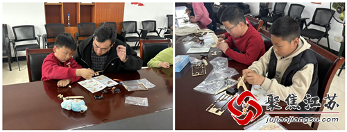 理论讲解结束后,进入了最令人期待的制作环节。孩子们小心翼翼地打开材料包,对照着说明书,开始了自己的"造机之旅"。有的孩子专注地打磨木板边缘,有的认真调试机翼角度,还有的在安装螺旋桨时遇到了困难,但在志愿者和小伙伴的帮助下很快迎刃而解。活动现场,讨论声、欢笑声此起彼伏,"幸福课堂"化身为充满创意与活力的科技工坊。