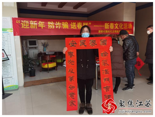在春节来临之际,为更好地传承中华优秀传统文化,营造健康祥和、喜庆温馨、积极向上的文化氛围和节日气氛,新春的年味儿,要从一副红红的手写春联开始!1月10日,江宁街道清修村新时代文明实践站围绕“文明新春 志愿有‘宁’”主题,开展“迎新年 防诈骗 送春联”新春文化活动,志愿者与书法老师一起把浓浓的年味和新春的祝福送到村民手中。