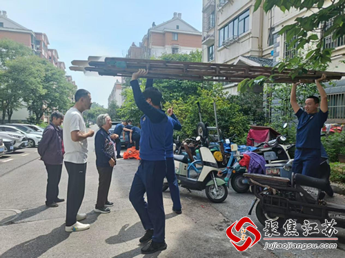胡甜第一时间将情况上报社区,并联系物业公司说明隐患位置和紧急程度。社区立即协调消防人员携带装备赶赴现场。为防止处置过程中马蜂伤及居民,胡甜和物业工作人员一边在楼下拉起警戒线,一边通过微信群、小喇叭提醒周边居民关好门窗、暂时避让。