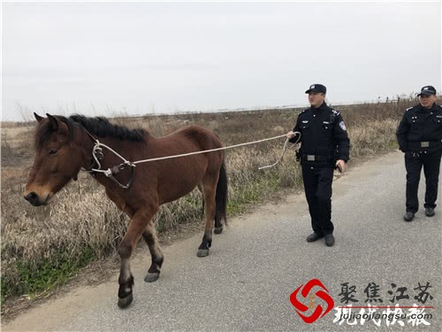 1 月 29 日下午,太仓市公安局浏河派出所接到群众报警称,有一匹马在长江边乱跑。派出所民警闻讯立即出动,当他们赶到浏河海事处北侧的荒地附近时,果然看到有一匹马正在江边悠闲地吃草。