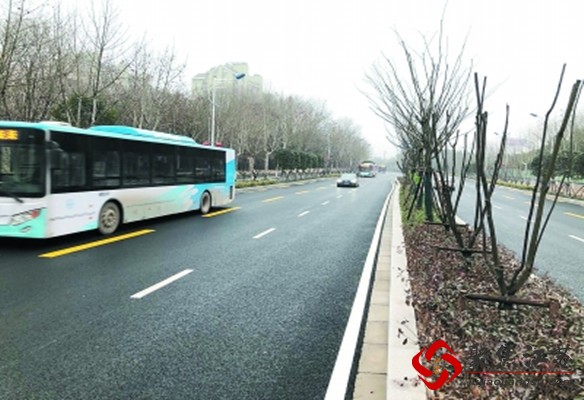崭新的中山门大街快车道,公交优先、车行顺畅。本报记者 何钢摄