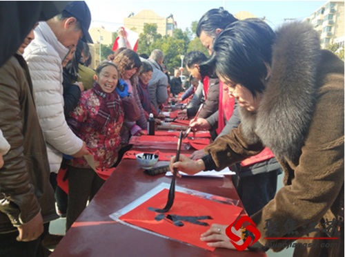 挥毫一展凌云志,书香墨韵迎新春。在江宁陶吴社区,江宁区文联、区书法家协会的字画大师为居民写春联、送祝福。