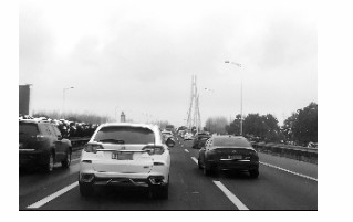3点40分,记者从葛塘北边进入二桥高速,路上开始出现车辆慢行。一路上车速较慢,但没有出现停顿现象。遗憾的是,不时出现急性子司机,抢占应急车道通行。