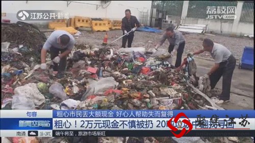 据江苏公共·新闻频道《新闻空间站》报道:前不久,镇江句容天王镇的居民丁先生,错把两万元现金当垃圾,给扔进了垃圾桶。