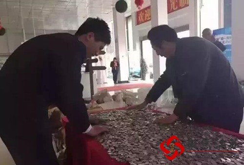 4S店销售人员江海峰说:“这次张先生购车,对于钱币清点来说,虽然说工程量巨大,但已经熟门熟路了,目前正在联系银行。”原来,这是张先生购买的第二辆汽车了,2016年,张先生曾背了50多袋、重达1.33吨的硬币来购置新车。