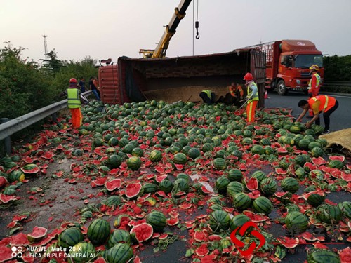 看天色将晚,晚高峰车流也比较密集,好在高速交警及时到达现场警戒疏导,维持通行秩序,才未酿成更大后果。截止晚8时30分,侧翻车辆吊装及事故现场西瓜按好坏分类处置结束,也未发生次生交通事故,将事故损失降至到了最低。