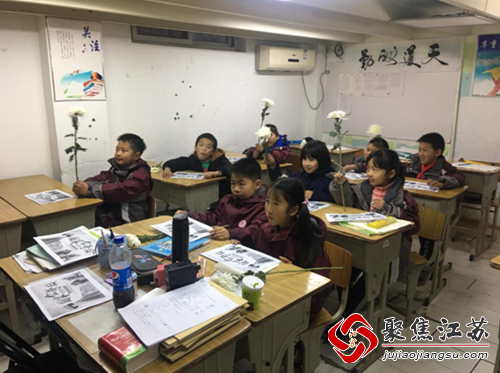 现场,老师用真实的历史照片和质朴的语言向青少年讲述了南京大屠杀这一惨痛的历史过程,提醒同学们牢记日军在中国、在南京犯下的罪行,珍爱和平。随后老师带领学生们折叠小白花,并为南京大屠杀遇难同胞默哀一分钟,寄托哀思。教育小学生们不忘国耻、发奋学习,为实现中华民族伟大复兴的中国梦而努力奋斗。
