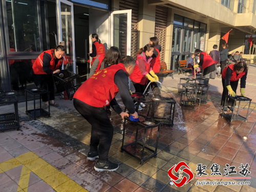 活动中,志愿者们身穿红马甲,拿着扫把、拖把、抹布等工具,对尧辰景园小区居民活动室展开了全面清理打扫。大家分工协作,有的擦洗桌椅;有的扫地拖地;有的擦窗子,充分发挥不怕脏、不怕累的精神,认真清扫活动室内每一个卫生死角,做到不遗漏一处。经过志愿者几个小时的努力,活动室面貌焕然一新。