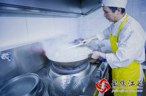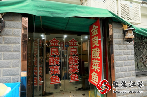 聚焦江苏网讯(图/文:朱旭先、马洪伟)金良酸菜鱼饭店坐落在南京宁海路旁的北东瓜上,北东瓜市呈东西向,它全长不到百米,宽仅约3米。要不是南师大的李同学把记者引到巷口,还真不容易找。李同学挥手向我们告别,记者往巷里没走几步便看到了一扇仅两米高半开的玻璃门,玻璃门上贴一块简陋的PC板,不是上面写着“金良酸菜鱼”5个大字,记者真不敢相信,深受南京市民欢迎而又声名远播的金良酸菜饭店会坐落在这么个不干起眼的地方。