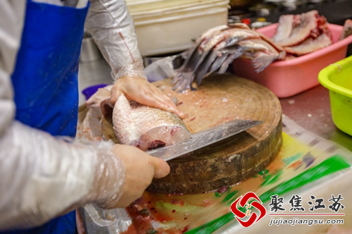 有道是酒香不怕巷子深!进门看到厨师和服务员们忙碌的样子,便能看出这里的生意有多好。餐厅内服务员们各就各位,有的在摘菜,有的在验收货,有的在打扫卫生,有的在摆台子。而厨房的师傅们更是忙得不以乐乎,有洗菜、切菜的,有大火熬制汤底料的,有杀鱼、洗鱼、剔骨、切鱼片、浆鱼、烧鱼的……40多平方米的后厨内5位大厨和五、六位服务员正在各自的岗位上几乎前心贴后背地有条不紊的忙碌着。