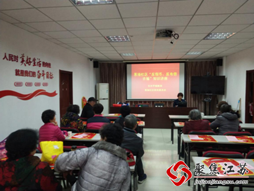 12月18日下午,马群街道果场社区联合马群百水芊城邮政储蓄公司开展了“反假币、反电信诈骗”知识讲座。来自邮政储蓄的张盼经理,通过播放警示教育视频、案例解说、发放宣传手册等形式,向居民详细讲解了典型诈骗的典型特征、表现形式、常见手段以及防范措施,并结合工作中的真实案例,提醒广大居民在生活中提高警惕,拒绝高额诱惑,保护好个人的退休工资和养老钱。