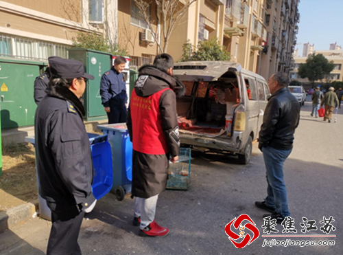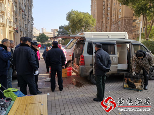 12月31日,马群街道蛇盘社区联合街道城管、市场监督管理局马群分局对辖区内杜鹃园小区里的活禽交易点进行联合治理,严查违法饲养、交易、屠宰活禽行为。