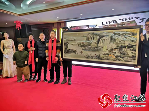 同时,现场还有不少残疾志愿者做的手工艺品。其中最引人注目的是由残疾学员们制作的手工珠画《江山如画》。此画长2.1米,宽80厘米,由8位残疾学员不辞辛劳,耗时3个多月,使用了100多万个小珠子粘贴而成,异常精美。残疾学员们坚持奋斗的精神感染到每一位爱心人士。经过十多轮的加价,这幅作品最终被爱心人士以8000多元的价格买走。