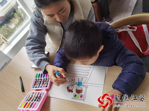 之后,志愿者与孩子们一同阅读了绘本故事《被挤烂的丸子店》,并取出画纸、画笔,带领孩子们根据民警讲述的内容,绘制出自己有关交通法规的所思所学。而在孩子们的绘画过程中,志愿者与民警也在一旁进行了指引,进一步加强了孩子们对交通法规的认识。