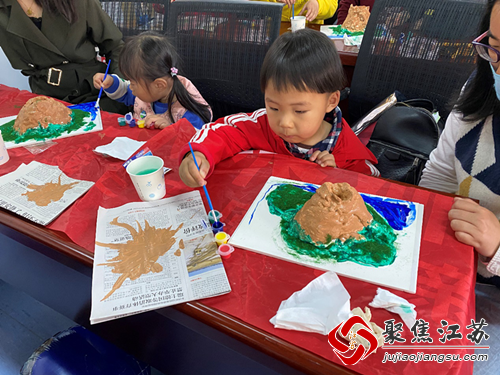 本次活动最重要的是让孩子们了解地球地貌。社工先向孩子们讲解了地球上主要的四种地貌:山脉、高原、平原和盆地,小朋友们紧接着说出了冰川、火山、湿地等不同的地貌。接着就需要亲子合作,共同完成创意作品——地球脉动。从地貌的塑性到上色,各种样貌的海岸、山脉、火山一个接一个出现了。孩子们不仅在创作中提高感知美、创造美的能力,还懂得了地球环境与我们每个人的生活息息相关。 “我要从小事做起,从一点一滴做起,从现在开始,呵护、爱护、保护我们的地球妈妈!”小朋友稚嫩的声音中饱含着守护地球的坚定信念。