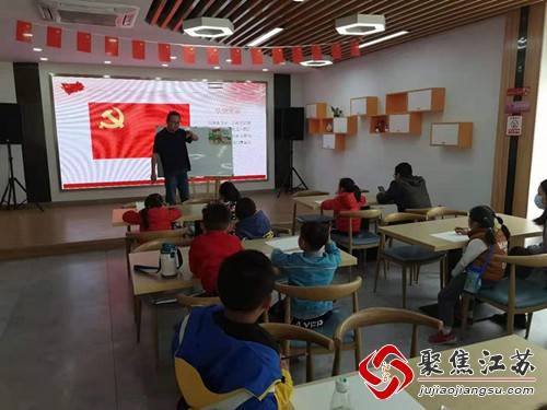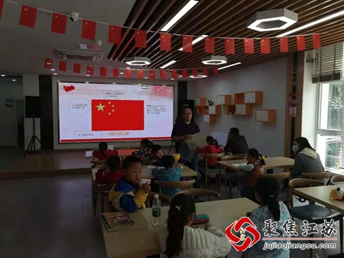 活动中,桥头社区新时代社会文明实践站志愿者为孩子们讲述了中国共产党的百年历史,讲述红旗的由来,从中国共产党的成立到革命胜利,孩子们听地十分认真,感受到今天的美好生活是革命先烈在艰苦卓绝的条件下,凭借坚定意志,克服重重困难换来的,大家互相分享了对党的了解和热爱之情。