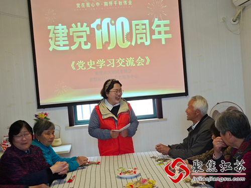 在党史教育的活动中,社区党支部带领党员学习党史知识。由于索墅社区老党员数量占比较大,集中上党课时人员参与率不高成为了社区党员教育的一大困境。为解决这一难题社区党总支联合支部书记和老党员、志愿者等多方资源,充分利用社区党支部服务阵地和村镇广场,就近将老党员组织到一起,提高党史教育的参与度,受到居民群众一致称赞,真正让百年党史 “飞入党员、百姓家”。