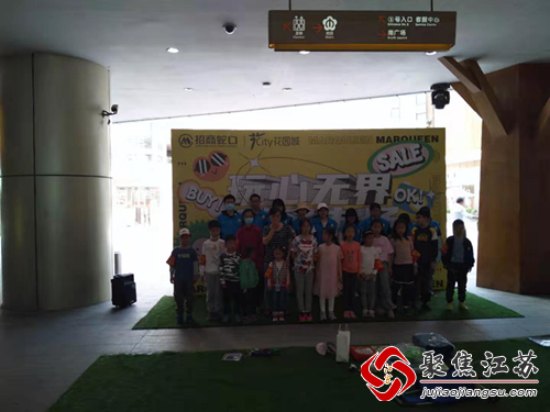 活动现场,大家换上志愿服,在主任的带领下来到了花园城1F阳光中庭。小朋友们也陆陆续续的到达活动现场,由社区志愿者指导他们进行活动签到,并为每一位小朋友带上志愿袖章,帮助他们摆设摊铺。