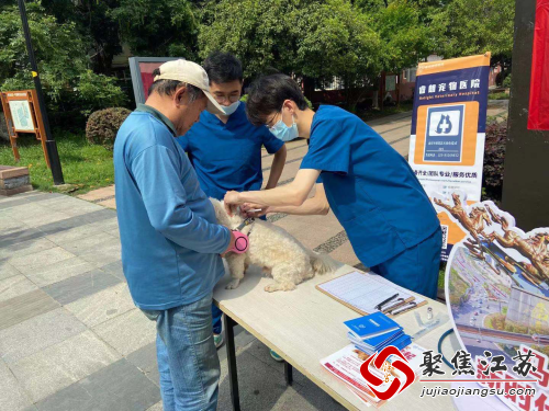 5月17日下午,果场社区联合马群派出所文明养犬办,邀请辖区睿朗宠物医院在天悦花园小广场开展了一场“犬证办理进社区,便民服务零距离”的活动。活动是为方便社区养宠居民办理相关疫证犬证,宣传文明养犬而开展,并在一定程度上提高非养宠居民的安全感。
