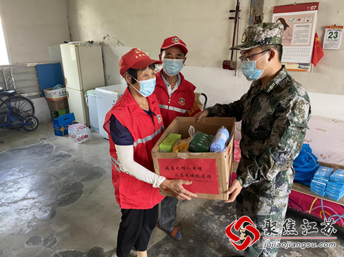 七月的南京,每日甚至接近40度高温,除了防范疫情还要注意防暑等诸多问题。禄口街道杨树湾村民兵营长张皓卿得知志愿队队员参与村庄疫情防控宣传及巡逻,考虑酷暑难当、夏日辛苦,就迅速张罗着防疫物资和高温防暑物品给正在做疫情防控的志愿队送去。